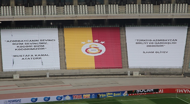 Koronavirüs tedbirleri nedeniyle seyircisilerin alınmayacağı Bakü Olimpiyat Stadı'ndaki tribünlere, Türkiye ve Azerbaycan bayraklarıyla Galatasaray ve Neftçi takımlarının bayrakları asıldı.