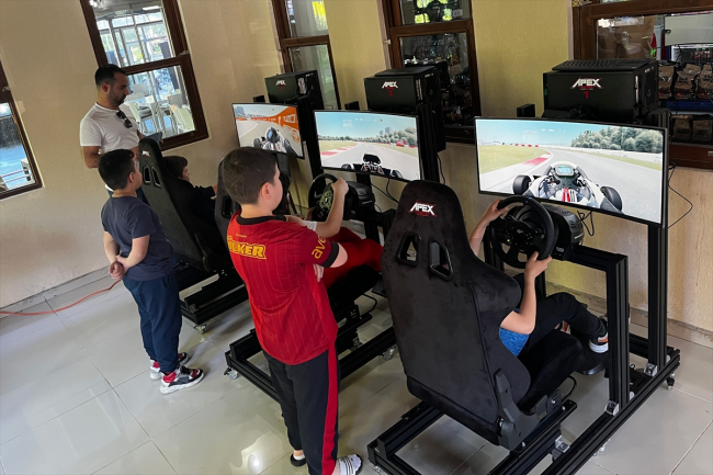 [Fotoğraf: AA]Katılımcılar, projenin teknoloji sponsoru Apex Racing tarafından çocuklara özel olarak tasarlanan simülatörlerle, proje için canlandırması yapılan TOSFED Körfez Pisti'nde karting deneyimi yaşıyor.