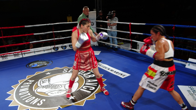 Üç Avrupa ve 1 dünya şampiyonluğu bulunan İspanyol boksör Maria Del Carmen Romero Molina ile mücadele eden başarılı boksör, rakibini 10 raunt sonunda hakem puanlarıyla yenmeyi başardı.