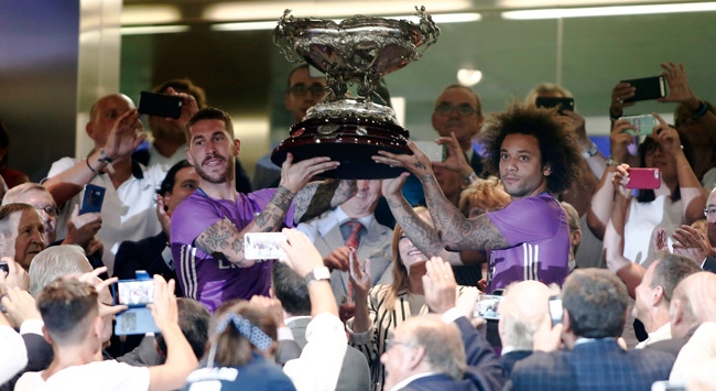 Real Madrid'in 9 Ağustos'ta Sevilla'ya karşı oynayıp 3-2 kazandığı UEFA Süper Kupası, karşılaşma öncesinde sahaya çıkartılıp taraftara gösterildi.