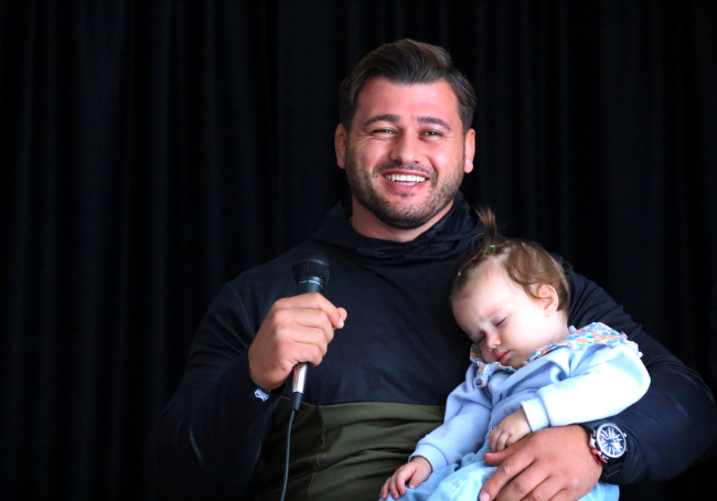 "Evde antrenman yaptığımda kızımın yanımda olması çok hoşuma gidiyor. Ay Vera ile hiç canım sıkılmıyor. Önceden bir saat çalışıyorsam, şu an 2 saat çalışıyorum. Nefes alış ve verişini de çok güzel yapıyor. En çok istediğim şey, bu ülkeye faydalı bir birey olması ve ülkesine hizmet etmesini çok istiyorum."