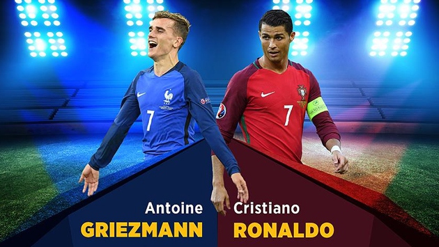 Turnuva boyunca takımına 3 gol, 3 asistlik katkı sunan Ronaldo, organizasyon tarihinde ikinci kez final oynayacak Portekiz'in ilk şampiyonluğunu kazanmasına yardım etmeye çalışacak. Şampiyonada 6 gol, 2 asistlik performans sergileyen Griezmann ise Fransa'nın EURO 1984 ve EURO 2000'den sonra üçüncü kez kupayı müzesine götürmesi için ter dökecek.