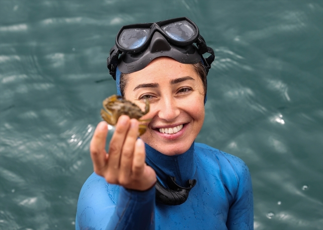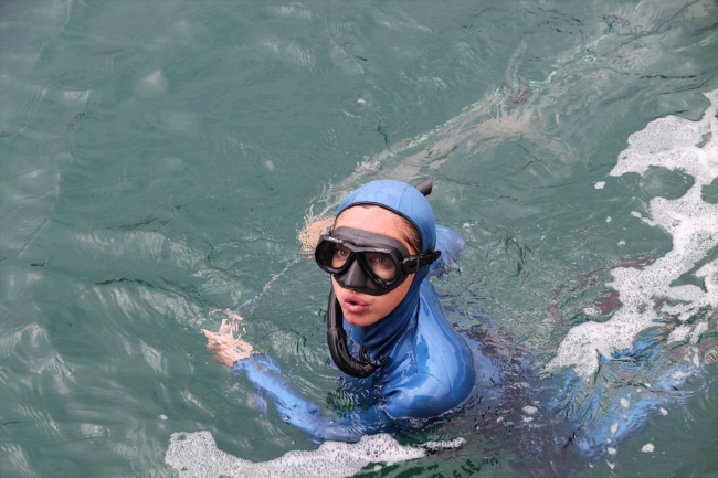 [Fotoğraf: AA]Şahika Ercümen, sembolik bir dalış yaparak, denizden ağ topladı. Ercümen, denizden toplanan ağa takılan canlıları kurtararak denize bıraktı.
