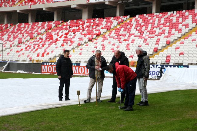 Sivas 4 Eylül Stadyumu zeminindeki bakım çalışmalarının ardından Türkiye Futbol Federasyonu (TFF) çim zemin denetçisi Hakan Cemal Aydın, stadyumu inceledi. Zemindeki çimleri kontrol eden Aydın, bazı ölçümler yaptı.