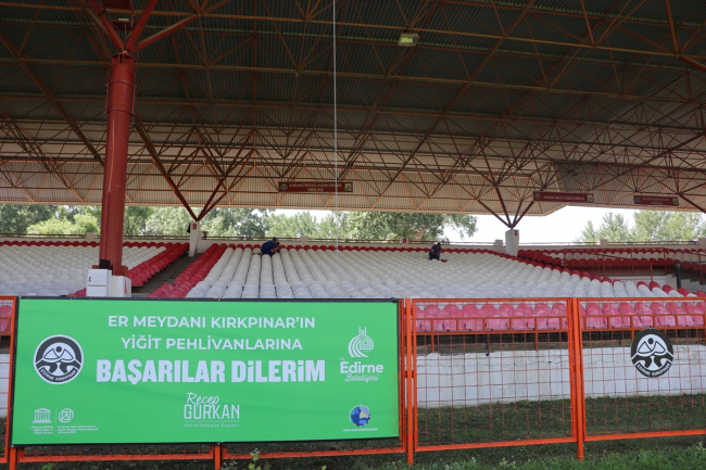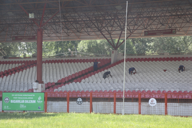 Kırkpınar'da çayıra 1-3 Temmuz tarihlerinde çıkacak pehlivanlar için meydan, güreşseverler için ise tribünler hazırlanıyor.