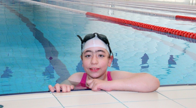 Üzeyir ve Dilek Kılıçoğlu ailesinin, bedensel engelli olarak dünyaya gelen kızları Neslihan, 7 yaşında 1 yıl fizik tedavi gördükten sonra, doktorların tavsiyesiyle yüzme sporuna başladı.