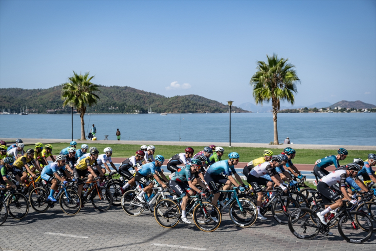 Fethiye'de başlayan etap, Marmaris'te sona erdi. Yaklaşık 30 derece olan hava sıcaklığı, hem sporcular hem de izleyenleri bunalttı.