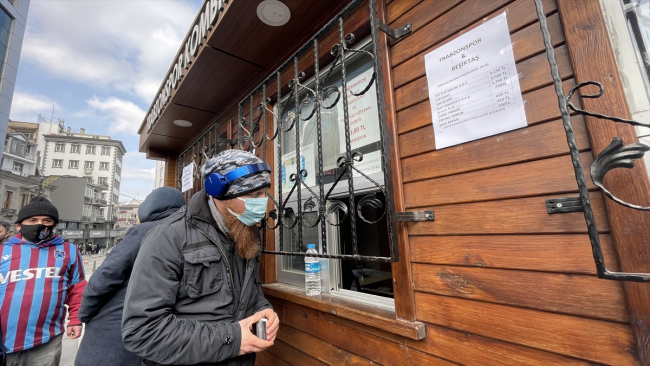 Maç biletlerinin saat 11.00'de satışa sunulacağının açıklanması sonrası taraftarlar, 15 Temmuz Şehitler ve Hürriyet Parkı'ndaki gişe önünde uzun kuyruklar oluşturdu.