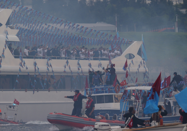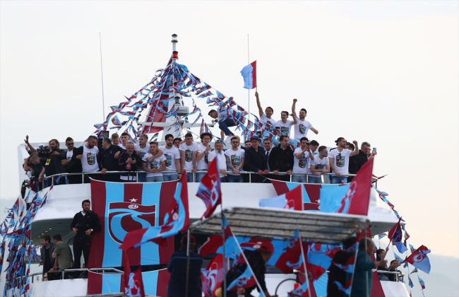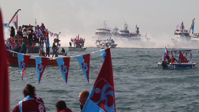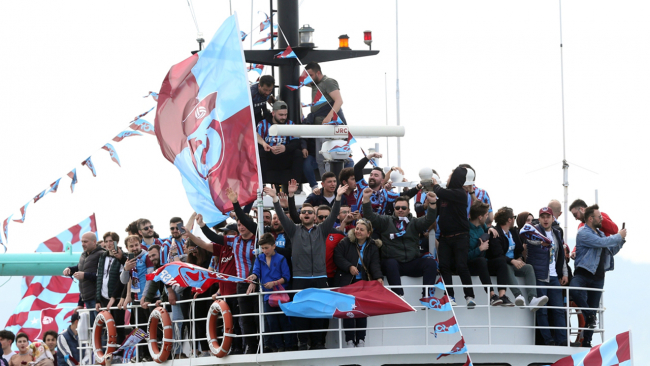 Kasketini takan teknik direktör Abdullah Avcı, deniz yolculuğu boyunca taraftarları selamladı. Ellerindeki meşaleleri yakan bordo-mavili futbolcular, taraftarlarla karşılıklı tezahüratta bulundu.