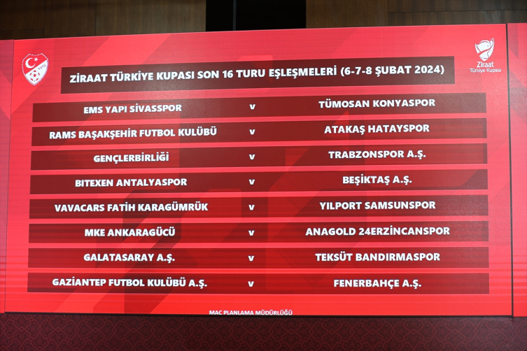 Ziraat Türkiye Kupası son 16 turu kura çekimi, Türkiye Futbol Federasyonu (TFF) Riva Hasan Doğan Milli Takımlar Kamp ve Eğitim Tesisleri'nde yapıldı.