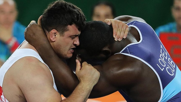 Brezilya'nın Rio de Janeiro kentindeki Carioca Arena'da düzenlenen erkekler grekoromen stil 130 kilo güreş müsabakalarının finalinde, milli güreşçi Rıza Kayaalp ile Kübalı Mijain Lopez Nunez karşılaştı.