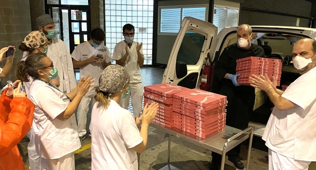 Kulüp çalışanları, büyük bir titizlik ile hazırlayan paketleri araçlarla hastanelerin acil bölümüne götürüyor.