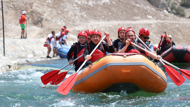 Sporcularla ve hakemlerle sohbet eden Cumhurbaşkanı Yardımcısı Fuat Oktay ile Gençlik ve Spor Bakanı Mehmet Muharrem Kasapoğlu, daha sonra parkurda rafting yaptı.
