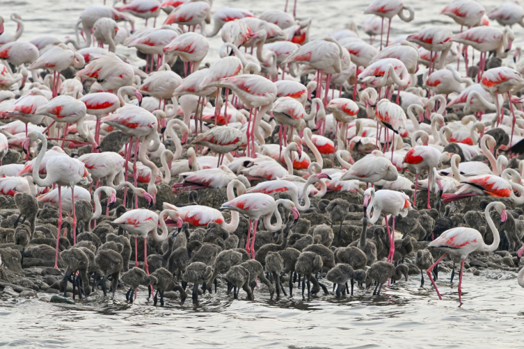 Adanın etrafını ahşap çit ile çeviren ekipler, yumurtaları yabani hayvanlardan korumuş oldu. Adada binlerce yavru yumurtadan çıktı. Yavru flamingolar yumurtadan çıktıktan 20-25 gün sonra suyla tanışıyor.