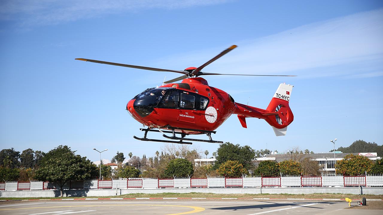 Sağlık Bakanlığının koordinesinde havalanan helikopterler, depremlerin büyük yıkıma neden olduğu çevre illerdeki yaralıları, Adana Şehir Eğitim ve Araştırma Hastanesi'ne taşıdı.