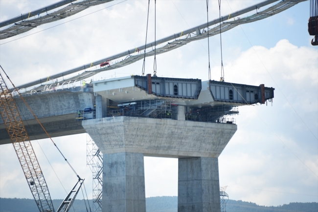 Köprünün, ağırlığı 105 bin tonu bulan kalıcı çelik yapıları ise Bursa'nın Gemlik ve Kocaeli'nin Gölcük ilçelerindeki Çimtaş fabrikalarında üretiliyor.