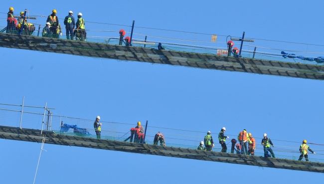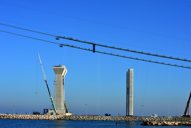 Her iki yakayı birbirine ilk kez bağlayan halatlar üzerinden devam eden çalışmalarda, köprü inşaatı için en önemli noktalardan olan kedi yolu yapım çalışmaları da devam ediyor.