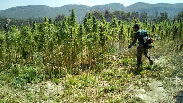 Operasyonda, haklarında arama kararı bulunan 4 kişinin yakalandığı kaydedilen açıklamada, 1 ton 959 kilo 765 gram esrar ve 2 milyon 303 bin 132 kök Hint keneviri, zaman ayarlı ve basma düzenekli 2 el yapımı patlayıcının ele geçirildiği ve imha edildiği belirtildi.