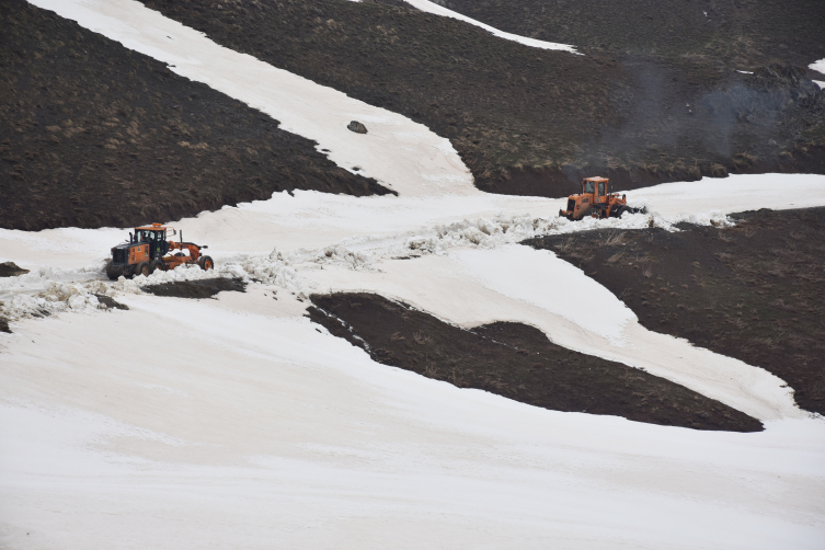 "Kentte geçen hafta yoğun yağış oldu. Ana yollarda heyelanlar meydana geldi. Çok şükür onların da üstesinden geldik. Yollarda olumsuzluk yaşanmaması için gece gündüz hazır bekledik. Her türlü olumsuzluğa hazırlıklıyız. Burada bazı noktalarda 5 metreyi bulan kar var. Bazı noktalar yeşile bürünmeye başladı. İki gündür çalışıyoruz. Yolu yarılamış durumdayız. Kalan kısımda ne kadar kar olduğunu bilmiyoruz. Bu şekildeyse 2-3 günde bitirmeyi düşünüyoruz. Vatandaşlarımızın mağduriyet yaşamaması için çalışmalarımızı sürdürüyoruz."