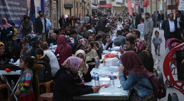 İftarların kaynaşmayı sağladığını dile getiren Haliloğlu, "Burada hep birlikte yemek yiyerek aynı sofrayı paylaşıyoruz. Yapanlardan Allah razı olsun." diye konuştu.