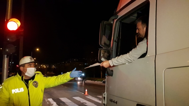 [Fotoğraf: AA]Ekipler genelgeye göre araçların kente giriş çıkışına izin vermezken, sürücüleri de bu konuda bilgilendiriyor.