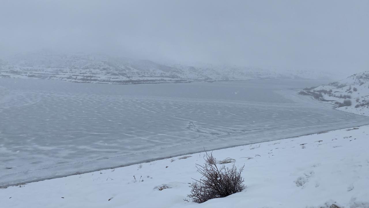 İl merkezine 10 kilometre mesafede bulanan 4 Eylül Barajı'nın yüzeyindeki buz tabakası, yaklaşık 5 santimetreye ulaştı.