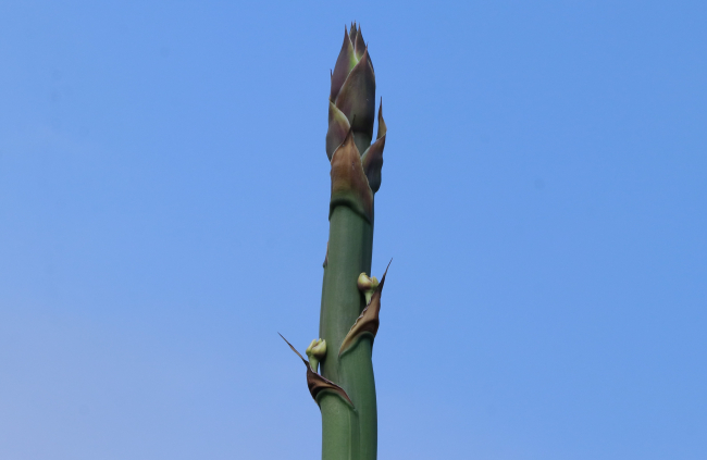 Denizin 3 metre üzerinde kayalık bölgede biranda boy atarak 4,5 metreye ulaşan çiçeği görenler şaşırdı. Tepe kısmından çiçeklenmeye başlayan, 50 ile 100 yıl arasında bir kez çiçek açan Agave bitkisinin kısa süre içerisinde çiçek açabileceği düşünülüyor.