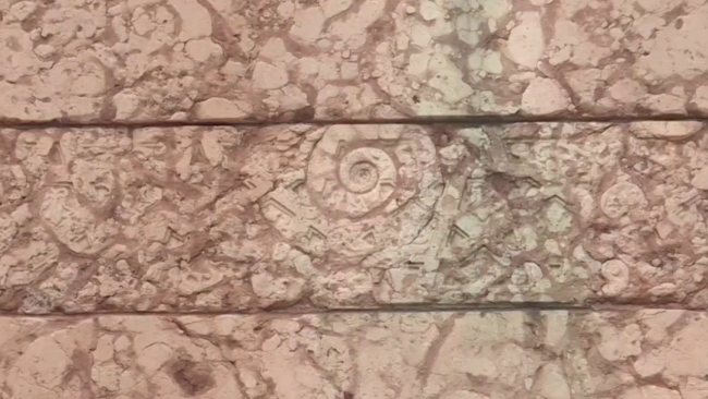 Milyonlarca yıl önce yaşamış bir deniz canlısı olan “Ammonit” fosili başta olmak üzere, taşın içerdiği birçok fosil şimdilerde görünür hale geldi.