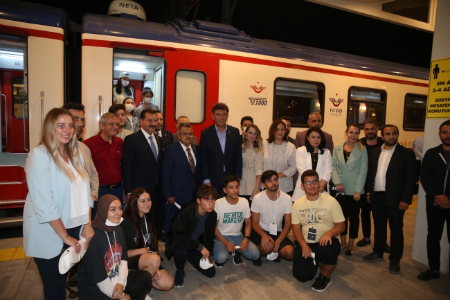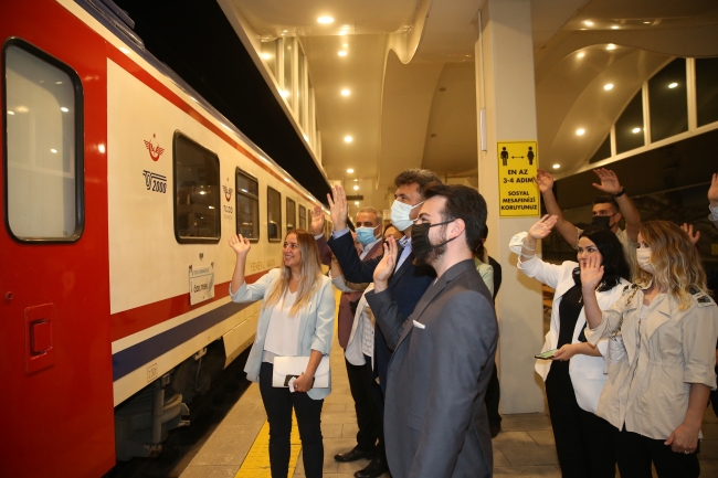 [Fotoğraf: AA]Basın açıklamasının ardından, milli mücadelenin duraklarını ziyaret edecek Zafer Treni, 99 genç ile yolculuğuna çıktı.