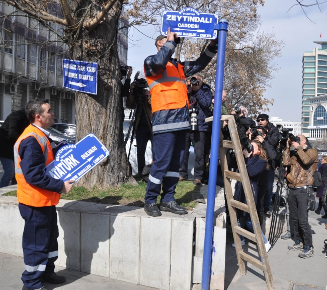 Fen İşleri Daire Başkanlığına bağlı Numerataj Şube Müdürlüğü ekiplerince caddenin adının bulunduğu direkteki "Nevzat Tandoğan" isim tabelası indirilerek yerine "Zeytin Dalı" yazılı tabela yerleştirildi.
