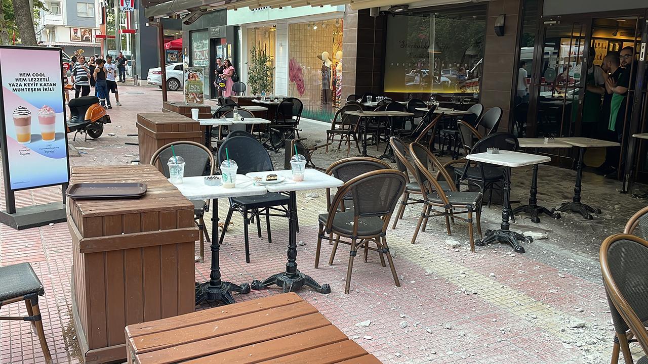 Ziyapaşa Bulvarı'nda bir kafede oturan Merve I. ve Ahmet Deniz Ö'nün üzerine kafenin bulunduğu 10 katlı apartmanın dış cephesinden kopan beton parçaları düştü.