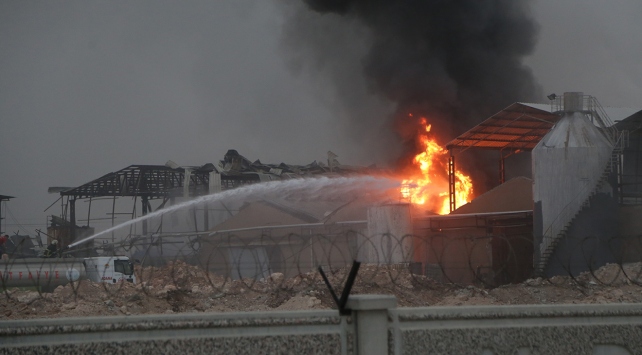 İlçenin Kürkçüler mevkisindeki tesisin deposunda henüz belirlenemeyen bir nedenle meydana gelen patlamanın ardından yangın başladı.