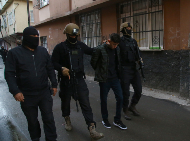 Gözaltına alınan bazı şüpheliler adli tıp birimindeki sağlık kontrolünün ardından emniyet müdürlüğüne götürüldü.