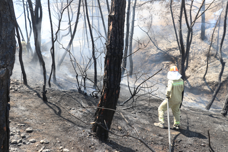 Yangın, ekiplerin havadan ve karadan müdahalesiyle kontrol altına alındı.