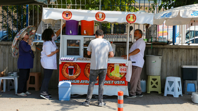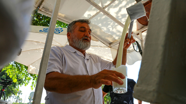 Mustafa Kemal Paşa Bulvarı'nda yaklaşık 40 yıldır seyyar tezgahta acılı ayran satan Servet Özkaya, işini severek yaptığını söyledi.