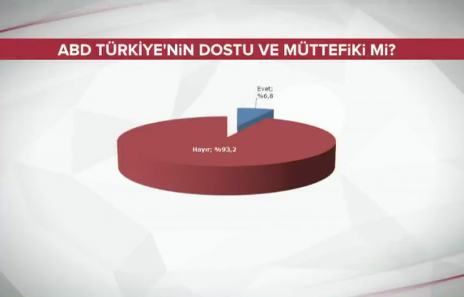 Türkiye'de nüfusun yüzde 93,2'si ABD'nin Türkiye'nin dostu ve müttefiki olmadığında hemfikir.