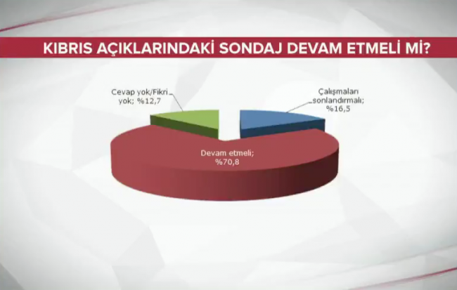 Türkiye'nin Kuzey Kıbrıs Türk Cumhuriyeti hükümeti ile birlikte doğu Akdeniz açıklarındaki gemilerle arama faaliyetlerini devam ettirmesinin veya sonlandırılmasını sorduk. Batı buna şiddetle karşı çıkıyor sizce Türkiye ne yapmalı diye sorduk. Orada cevap yok fikrim yok diyenler var.
