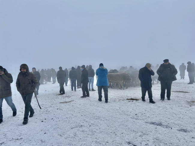 Kış geç geldi ama iyi geldi diyen Kemal Aras, “Ağrı’nın bacası olarak görünen hayvan pazarımıza hayvancılıkla uğraştığımız için sabah eksi 25-30 derecede geliyoruz. 12’ye kadar pazarımız bu şekilde devam ediyor. Hayvanların halini görüyorsunuz. Havalar çok soğuk, şartlar çok zor” diye konuştu.