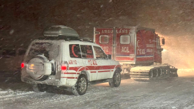 Kar ve tipi nedeniyle kapanan mezra yolunda ekipler ilerleyemedi.