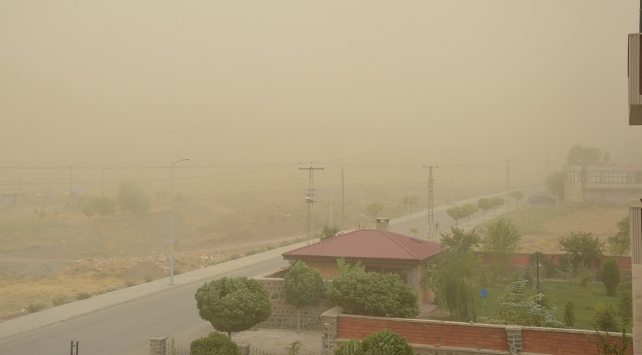 Ağrı'nın Doğubayazıt ilçesinde şiddetli rüzgar ve oluşan toz bulutu yaşamı olumsuz etkiledi.