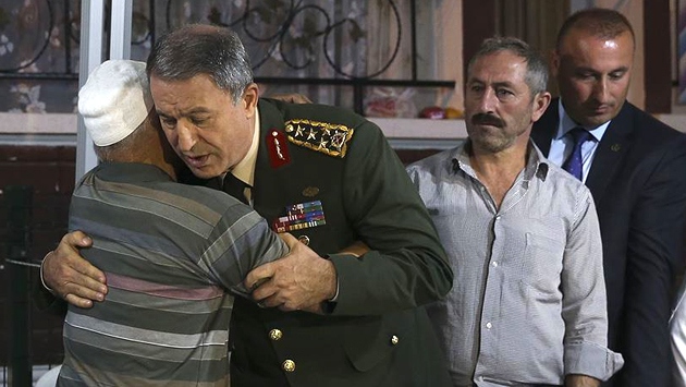 Genelkurmay Başkanı Orgeneral Hulusi Akar, Van'ın Erciş ilçesinde bölücü örgüt mensuplarınca düzenlenen saldırıda şehit düşen jandarma er Eyüp Öksüz'in evine taziye ziyaretinde bulundu.