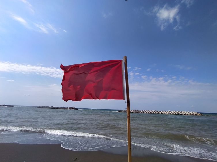 Sahillerdeki bayrakları kırmızıya çeviren cankurtaran ekipleri, vatandaşları denize girmemeleri konusunda uyarıyor.