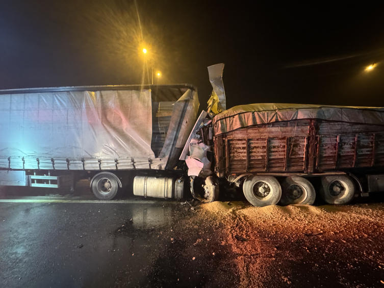 Otoyolun Ankara istikametinde seyreden Turan Biçer yönetimindeki demir levha yüklü tır, Düzce gişeleri mevkisinde önünden giden Azmi G. idaresindeki kum yüklü tıra çarptı.