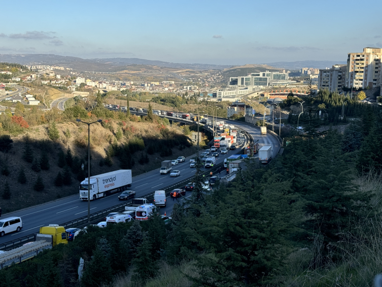 Kaza nedeniyle ulaşımın tek şeritten sağlandığı otoyolun Ankara istikametinde araç kuyruğu oluştu.