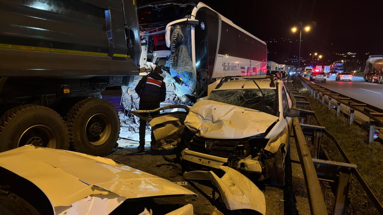 Otoyolun Ankara istikameti Sapanca kesiminde, 1 otobüs, 1 kamyon ve 2 otomobilin karıştığı kaza meydana geldi.
