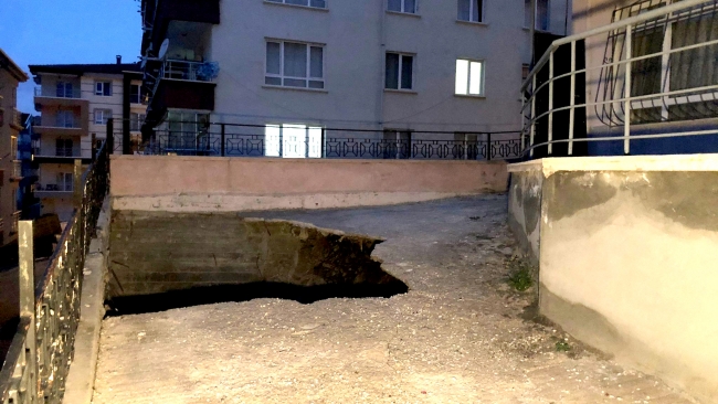 Yeşilbayır Mahallesi'ndeki Rüştü Yıldız Apartmanı sakinleri çökme ve yıkılma sesleri üzerine binanın arkasında bulunan otoparkı kontrol etti.