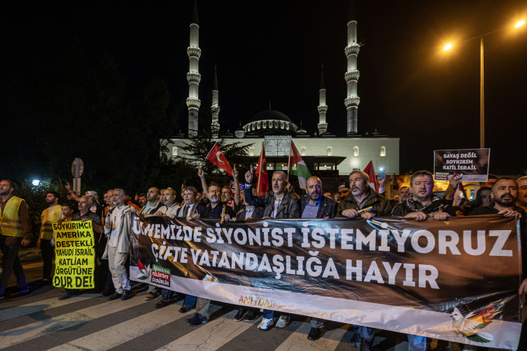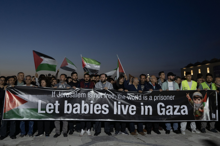 Grup, Kocatepe Cami'inden İsrail'in katliamlarını protesto etmek için Sıhhıye'ye kadar yürüdü. Çevredekilerin de destek verdiği yürüyüşte İsrail aleyhine sloganlar atıldı, saldırılar lanetlendi.
