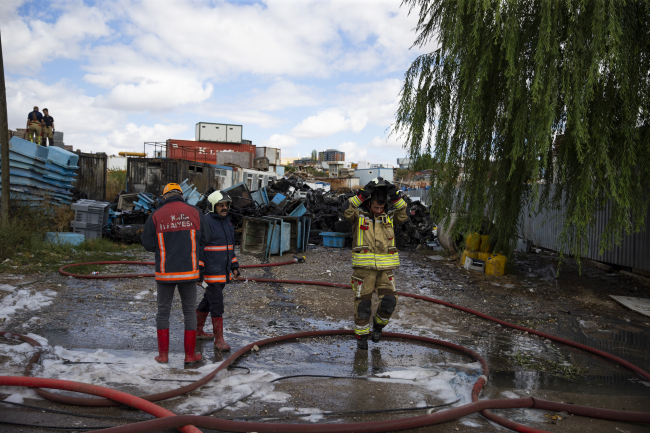 Yenimahalle ilçesindeki Hurdacılar Sitesi'nde plastik ve elektronik hurda malzemelerin bulunduğu açık alanda yangın çıktı.
