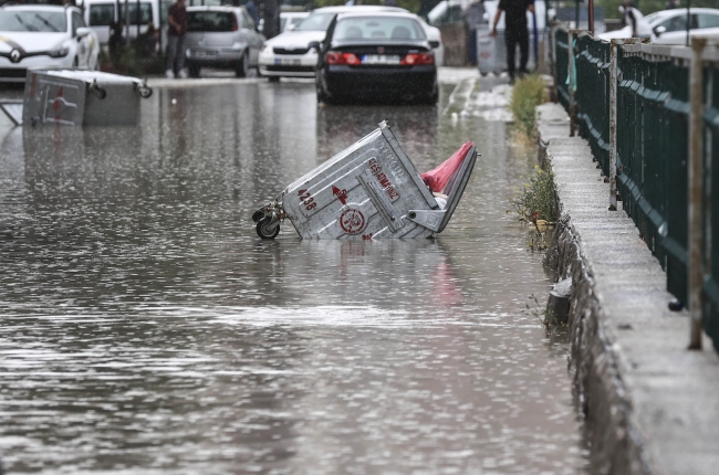 [Fotoğraf: AA]Mamak ilçesinde caddeler göle döndü, iş yerlerini su bastı. Araçlar ve çöp konteynerleri sele kapılarak sürüklendi. Birçok araç da selde mahsur kaldı.