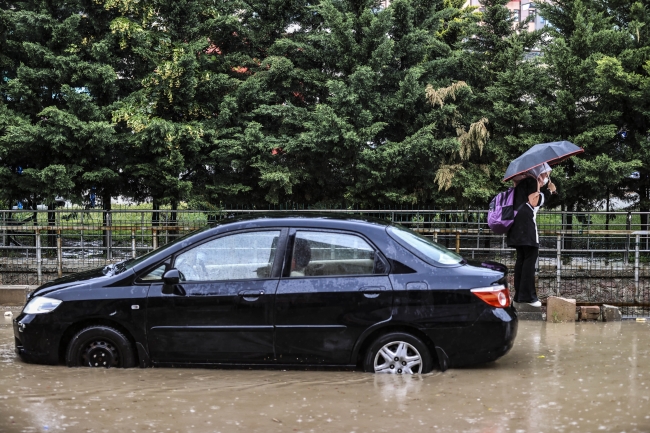 Ankara'da etkili olan yağmur kısa bir süre sağanağa dönüştü. Yoğun yağış su baskınlarına neden oldu.